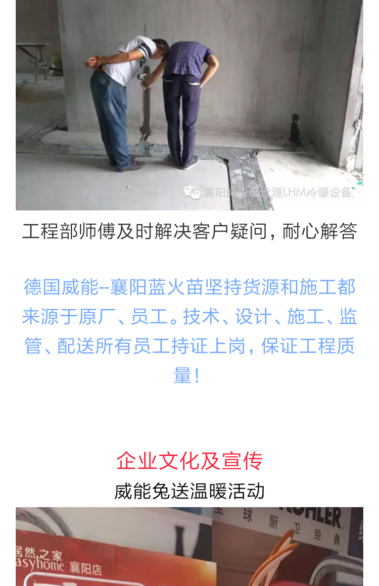 德國威能---襄陽藍(lán)火苗冷暖設(shè)備有限公司,簡稱“襄陽藍(lán)火苗”是一支擁有十四年暖通及舒適家居設(shè)備銷售、安裝經(jīng)驗的團(tuán)隊。是襄陽地區(qū)最早從事家用供暖的暖通公司。成熟的銷售及安裝售后經(jīng)驗,使公司穩(wěn)健快速成長為襄陽地區(qū):“德國威能”系列產(chǎn)品、“美國森樂高端凈水設(shè)備“,襄陽唯一正規(guī)一級代理經(jīng)銷商。是襄陽市唯一一家具備“燃?xì)饨?jīng)營許可證”的暖通公司。德國威能月星家居店擁有八百平方米,目前屬于中國最大德國威能專賣店,繼2016年被評為湖北省最佳德國威能專賣店。多個特許和唯一,給了藍(lán)火苗人高質(zhì)量高標(biāo)準(zhǔn)的行業(yè)職責(zé),顧客至上,服務(wù)至上的公司理念。